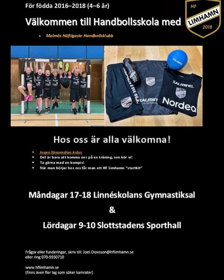 Hej! Från och med imorgon kör träningen igång som vanligt för alla våra lag. Alla som är nya, det krävs ingen föranmälan utan ni är välkomna direkt på plats. Ta gärna med era kompisar, vi har en rolig ”vårsäsong” att se framemot! Forza Limhamn! —————————————————————————- Handbollskola 4-6 år (Födda 2016-18) Måndag 17.00-18.00 Linneskolans Gymnastiksal Lördag 09.00-10.00 Slottstadens Sporthall F 7-8 (Födda 2014-15) Tisdag,Onsdag & Torsdag 17.30-18.30 Linneskolans Gymnastiksal P 7-8 (Födda 2014-15) Tisdag,Onsdag & Torsdag 17.30-18.30 Linneskolans Gymnastiksal F 9-10 (Födda 2012-13) Måndag 17-18, Tisdag 18-19 & Onsdag 18-19 Slottstadens SPH P 9-10 (Födda 2012-13) Tisdag 18-19, Onsdag 17-18 & Torsdag 18-19 Slottstadens SPH P 12 (Födda 2010-11) Måndag 18-19, Tisdag 19-20 & Torsdag 19-20 Slottstadens SPH F 13 (Födda 2009-10) Måndag 19-20, Onsdag 19-20 & Torsdag 19-20 Slottstadens SPH Handbollfitness (Vuxna) Onsdagar 20.00-21.00 Slottstadens SPH (börjar den 11/1-23) HF Limhamn 8 jan 2023 0kommentarer