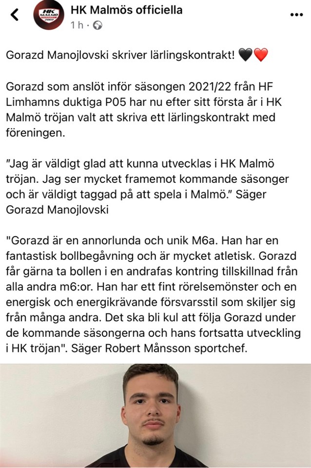 Vi säger stort grattis till den Fd Limhamns liraren Gorazd! Ännu ett bevis att man inte behöver komma från ett större klubb, för att ta sin handboll ett steg ytterligare! Glöm dock inte var du kommer ifrån 😉 Vi är stolta! Forza Limhamn! HF Limhamn 4 nov 2022 0kommentarer